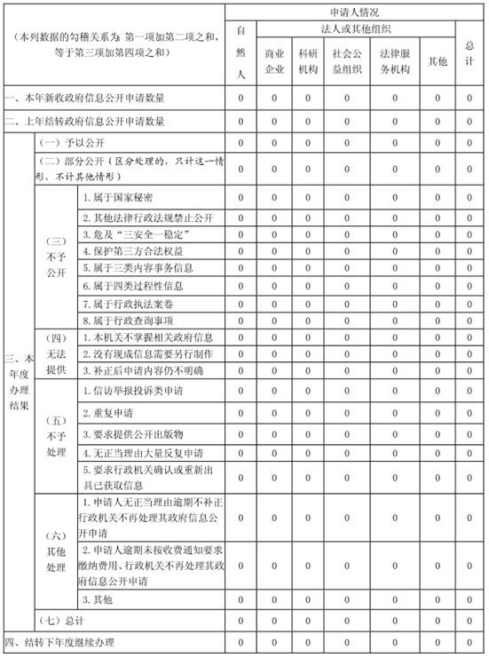 (三)认真规范处理依申请公开。规范政府信息公开的各个环节,申请登记、承办、审核、答复等各个流程严格按照《条例》执行。本年度按规定了受理政府信息公开申请,圆满地完成了规范处理申请答复工作。